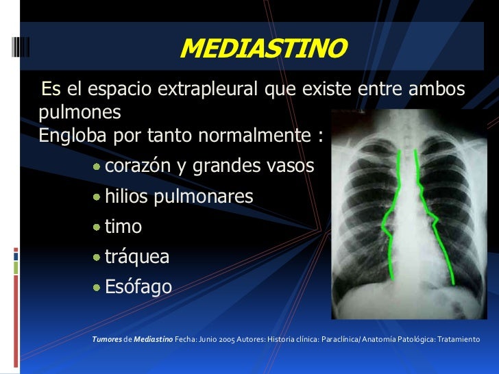 Cáncer de mediastino síntomas. El mediastino es la parte del cuerpo que se sitúa en el centro del tórax entre los dos pulmones, el esternón en la parte delantera, la columna vertebral posterior y el diafragma por debajo. Comprende, entre otras cosas, una parte del corazón , del esófago, de la tráquea y del timo. Cáncer de mediastino causas, síntomas, tratamiento youtube. Conoce todo sobre el cáncer de mediastino, a través del josé manuel mier odriozola, destacado cirujano torácico y miembro de top doctors topdocto. Cancro do mediastino causas, sintomas, diagnóstico e tratamento. Cancer mediastino. Tumores do mediastino em uma fração de tumores malignos de diferentes contas estrutura histológica para 2040%. O cancro do linfoma de mediastino mais comum apresentada (retikulosarkome, difusa e linfossarcoma nodular), doença de hodgkin; mais raro timoma maligno, angiossarcoma, neuroblastoma, dysgerminoma, condrossarcoma. Home asociación aedive. Creada en abril de 2010, aedive es la asociación empresarial para el desarrollo e impulso del vehículo eléctrico, una agrupación de empresas innovadoras que aglutina a toda la cadena de valor del vehículo eléctrico cuyos fines son “la gestión, representación, defensa y coordinación de. Sintomas cancer mediastino image results. More sintomas cancer mediastino images. Câncer do mediastino dr. Malucelli, médico de oncologia do. De forma geral os sintomas do câncer do mediastino decorrem da compressão de estruturas vizinhas e, portanto, são inespecíficos como dor torácica, sensação de peso, tosse seca, dificuldade respiratória, aumento de volume na região cervical (pescoço), disfagia (dificuldade de engolir alimentos), infecção pulmonar de repetição, etc.